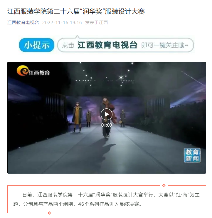 江西教育电视台:万象城平台第二十六届“润华奖”服装设计大赛