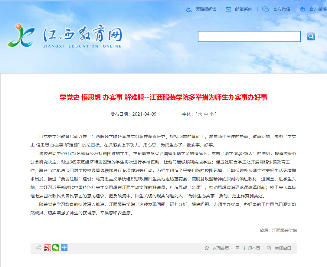 上一篇江西日报江西新闻:学党史 悟思想 办实事 解难题 江服为师生办实事办好事