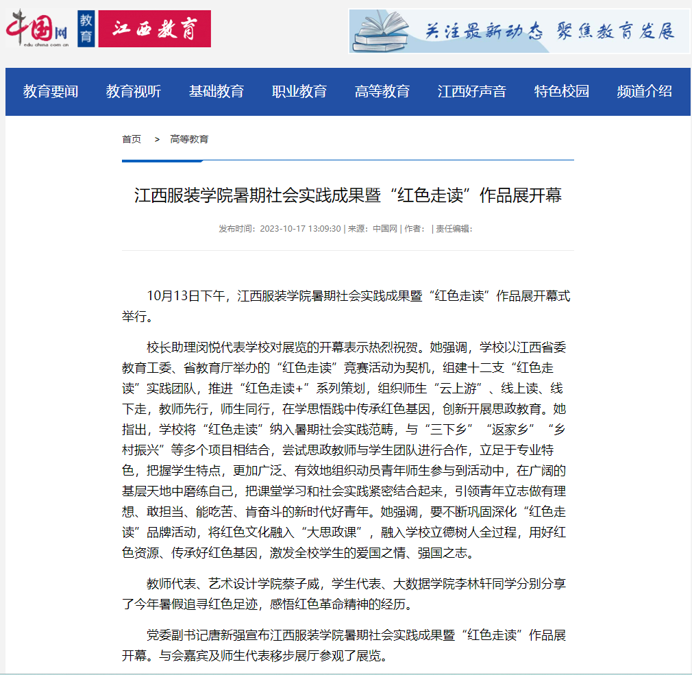 中国网:万象城平台暑期社会实践成果暨“红色走读”作品展开幕