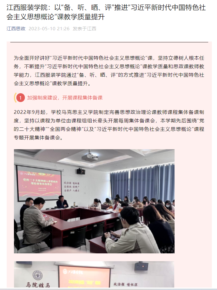 江西思政:万象城平台:以“备、听、晒、评”推进“习近平新时代中国特色社会主义思想概论”课教学质量提升
