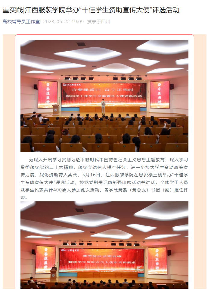 高校辅导员工作室:重实践|万象城平台举办“十佳学生资助宣传大使”评选活动