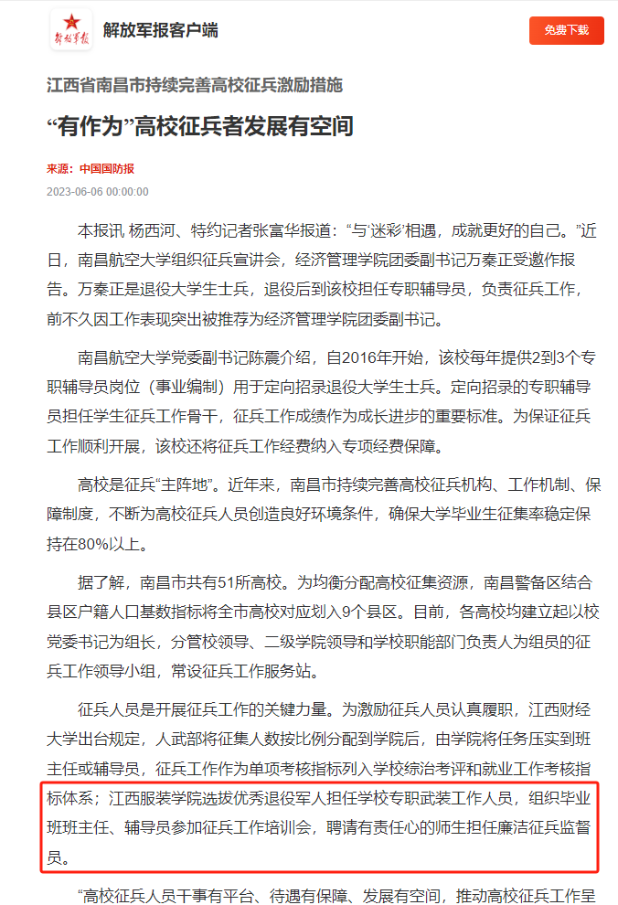 新闻链接:《解放军报》报道万象城平台征兵工作经验