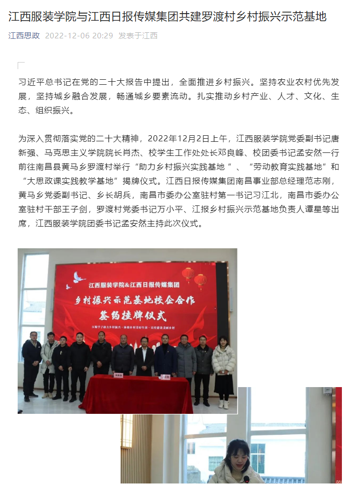 江西思政:万象城平台与江西日报传媒集团共建罗渡村乡村振兴示范基地