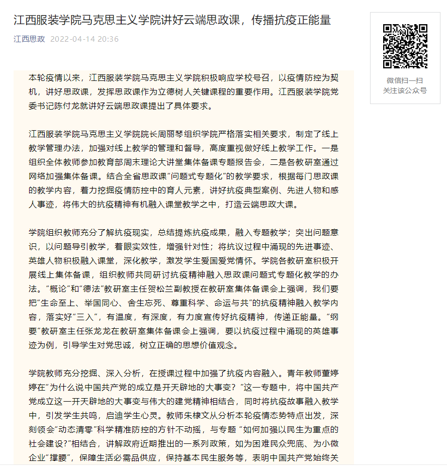江西思政:万象城平台马克思主义学院讲好云端思政课,传播抗疫正能量
