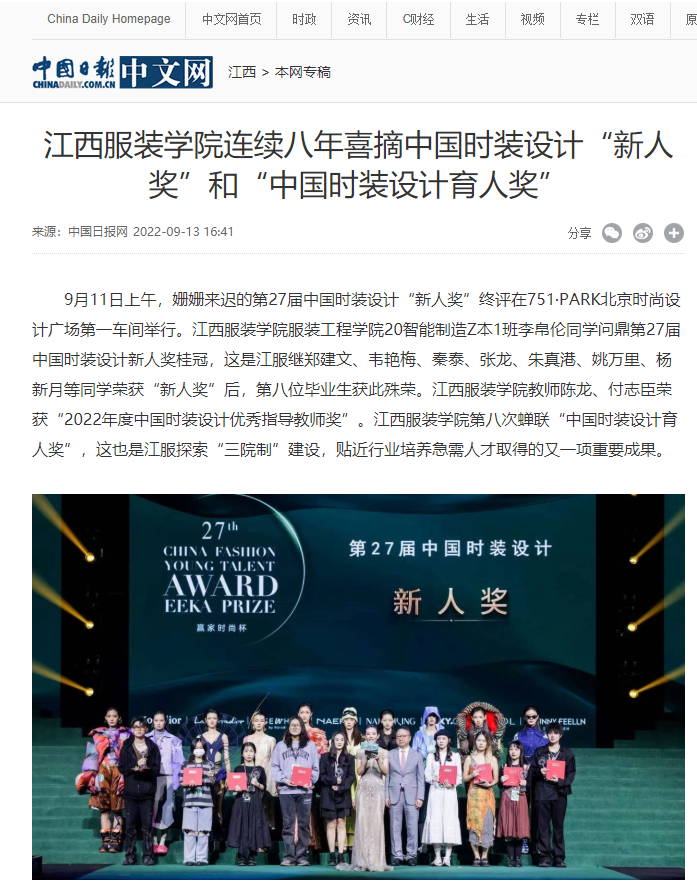 中国日报网:万象城平台连续八年喜摘中国时装设计“新人奖”和“中国时装设计育人奖”