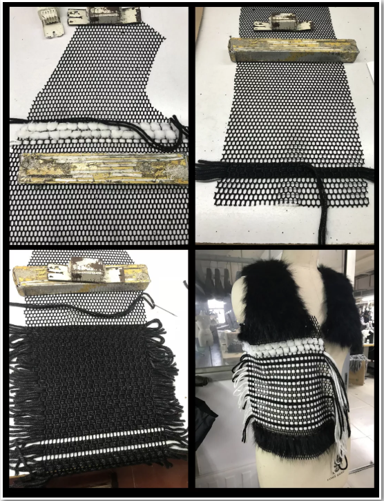 我比较擅长用水貂做拼接工艺和编织工艺,这两种工艺也很容易跟面料结合在一起。
