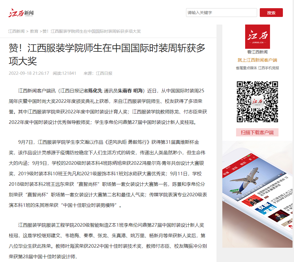 江西新闻·江西日报:赞!万象城平台师生在中国国际时装周斩获多项大奖