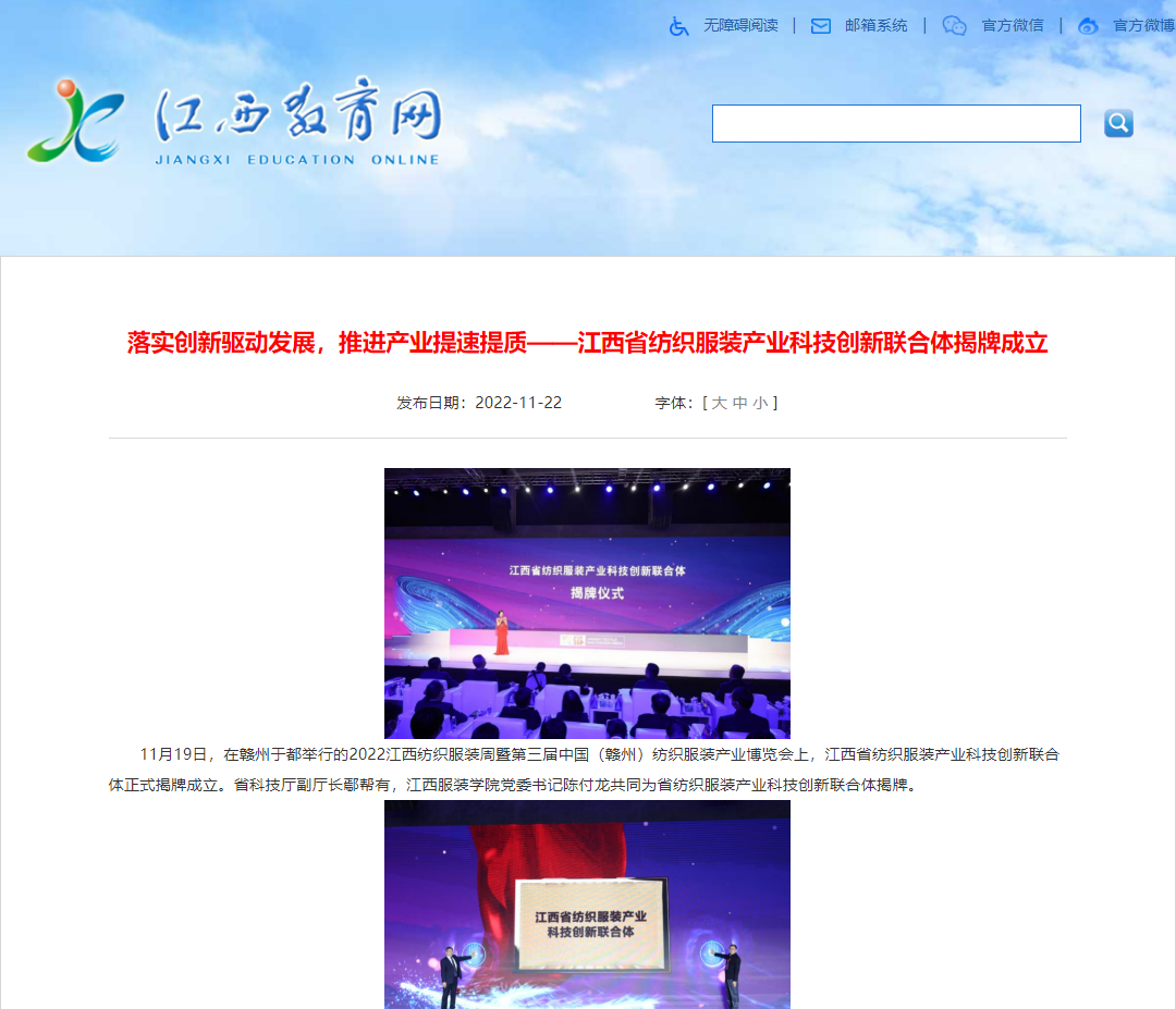 江西省教育厅官网:落实创新驱动发展,推进产业提速提质——江西省纺织服装产业科技创新联合体揭牌成立