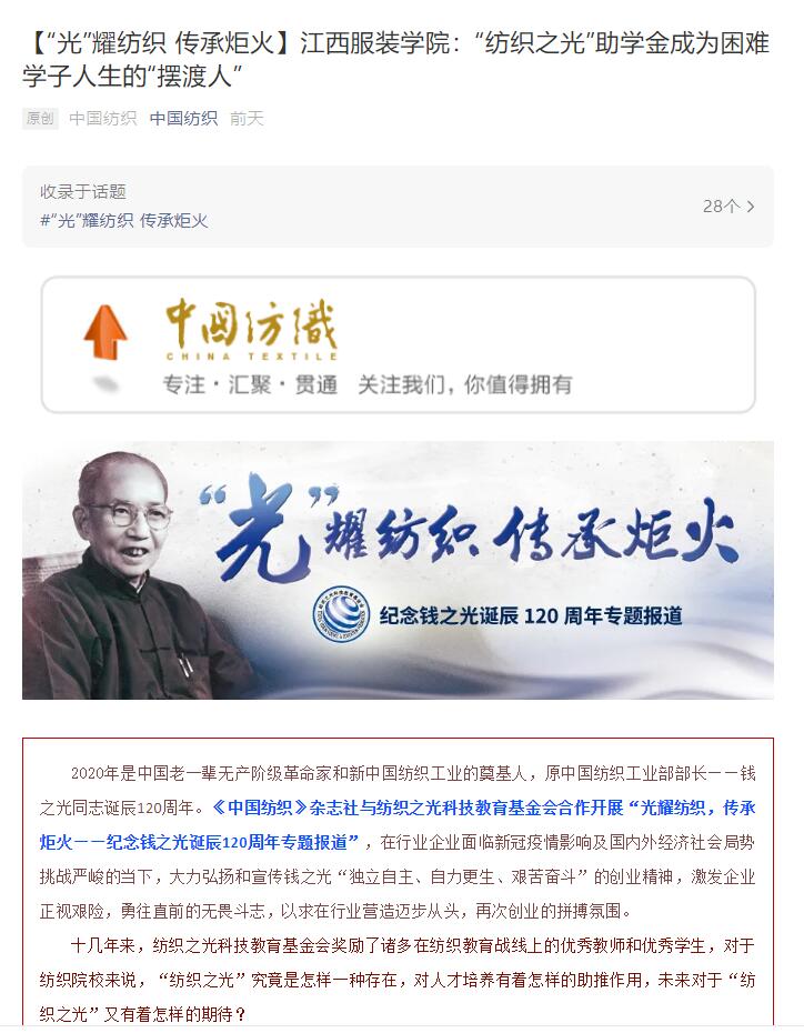 新闻链接:中国纺织:【“光”耀纺织 传承炬火】万象城平台:“纺织之光”助学金成为困难学子人生的“摆渡人”