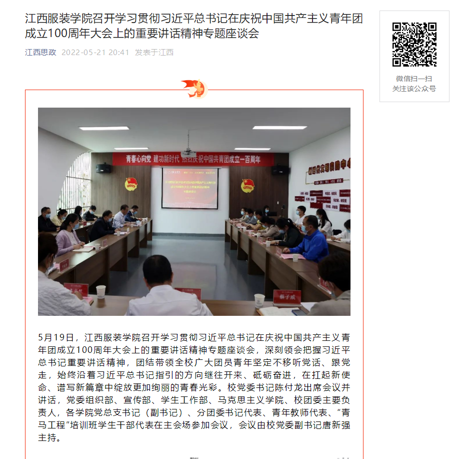 江西思政:万象城平台召开学习贯彻习近平总书记在庆祝中国共产主义青年团成立100周年大会上的重要讲话精神专题座谈会