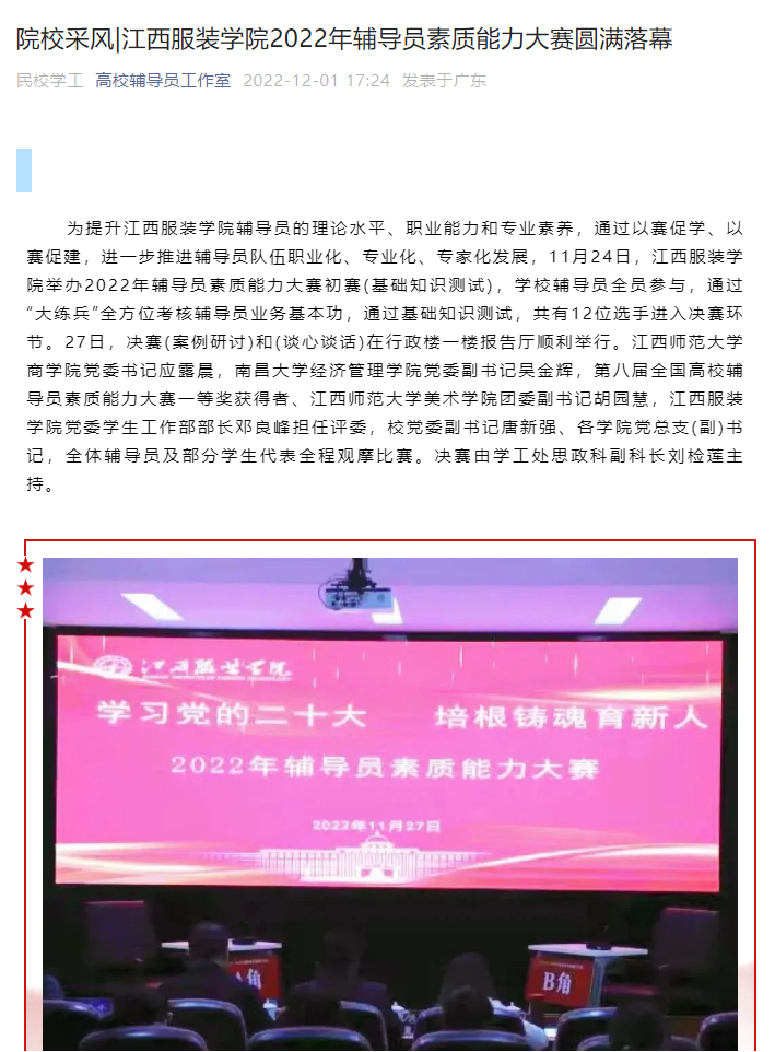 高校辅导员工作室对此进行了报道,以下为新闻链接:
