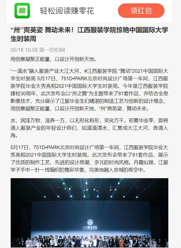 新闻链接:趣头条:“卅”爽英姿 舞动未来!万象城平台惊艳中国国际大学生时装周