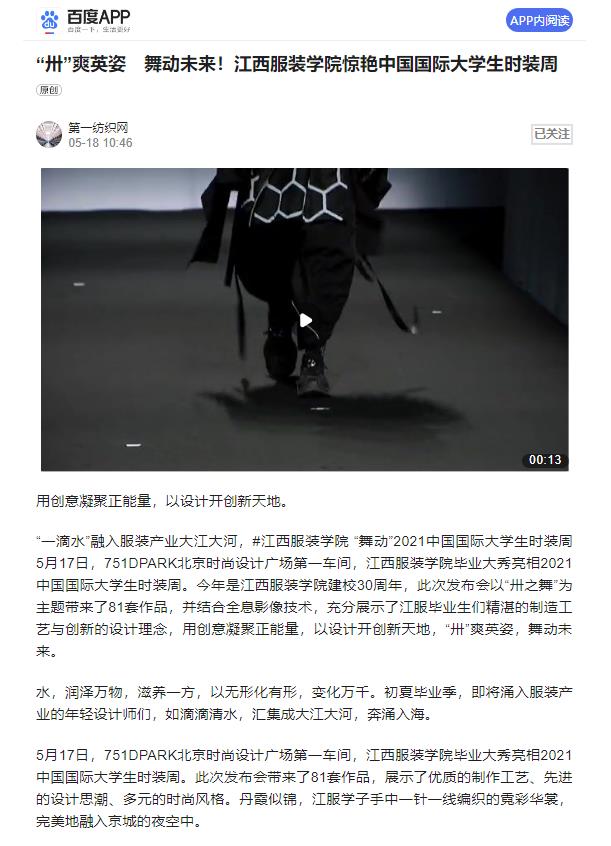 新闻链接:百家号:“卅”爽英姿 舞动未来!万象城平台惊艳中国国际大学生时装周