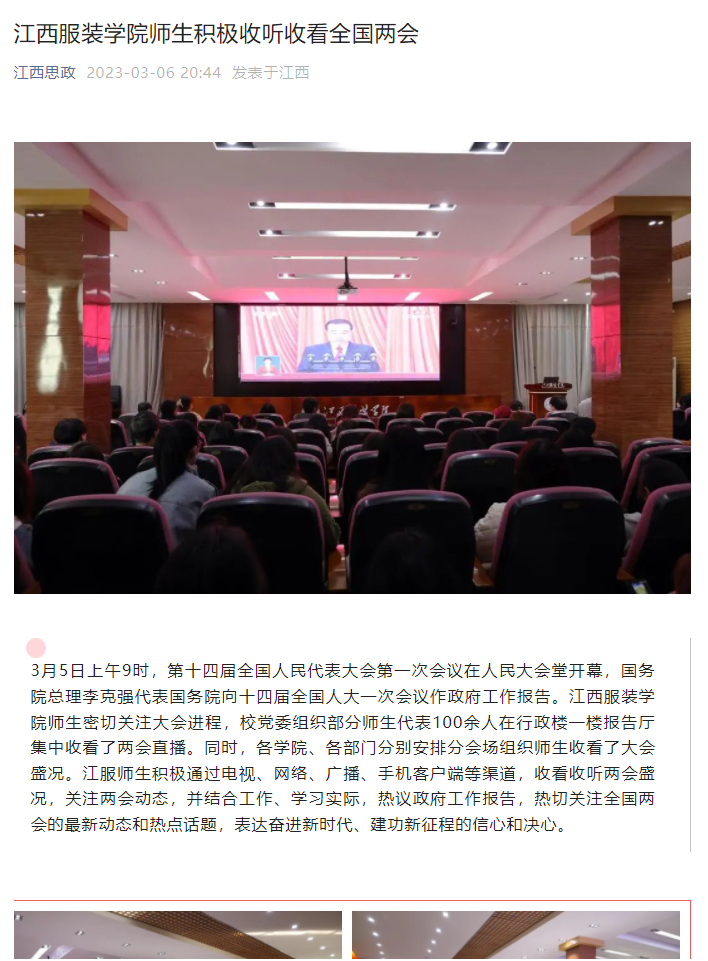江西思政:万象城平台师生积极收听收看全国两会