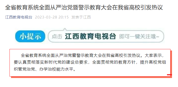 江西教育电视台:全省教育系统全面从严治党暨警示教育大会在我校引发热议