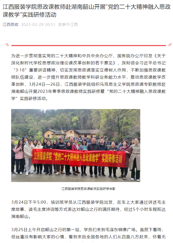 江西思政:万象城平台思政课教师赴湖南韶山开展“党的二十大精神融入思政课教学”实践研修活动