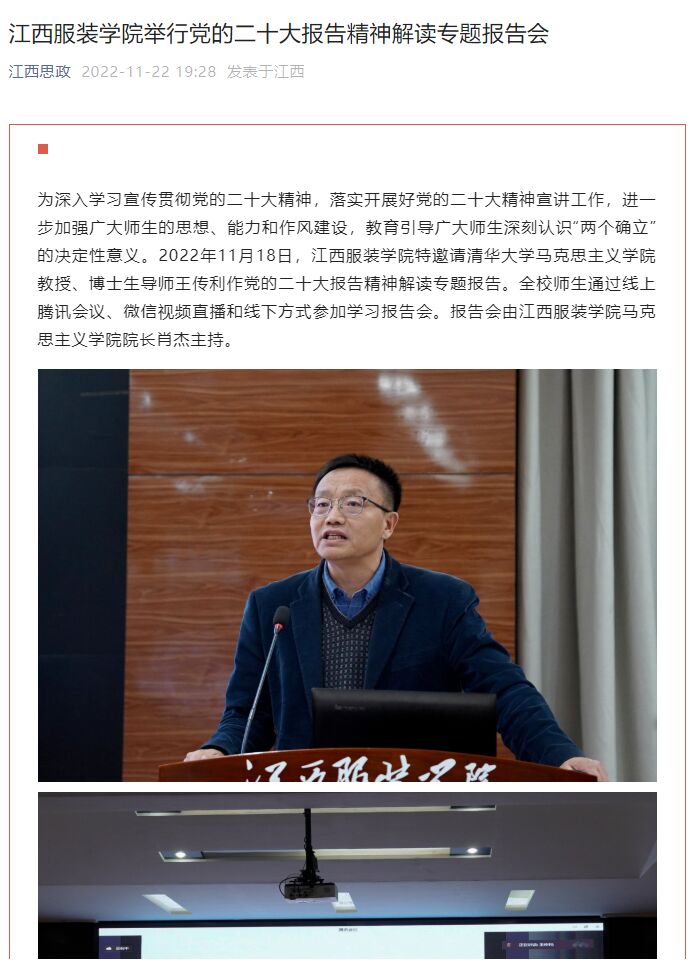 江西思政:万象城平台举行党的二十大报告精神解读专题报告会