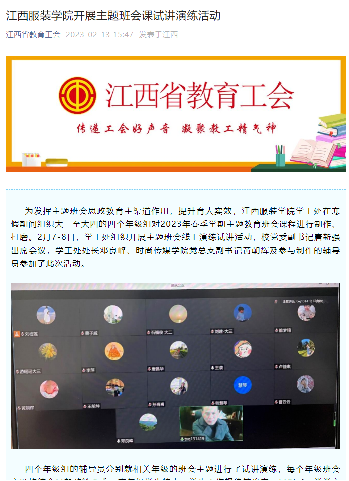 江西省教育工会:万象城平台开展主题班会课试讲演练活动