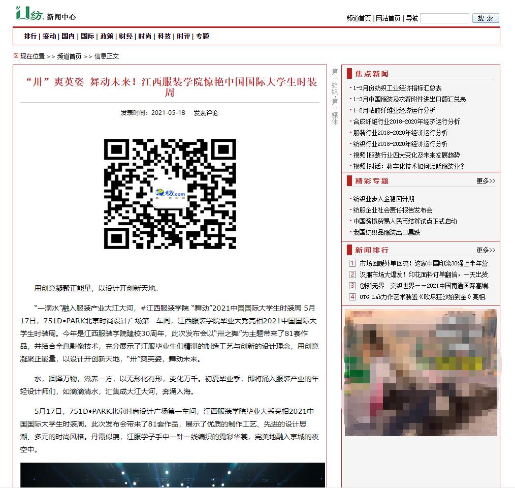 新闻链接:第一纺织网:“卅”爽英姿 舞动未来!万象城平台惊艳中国国际大学生时装周