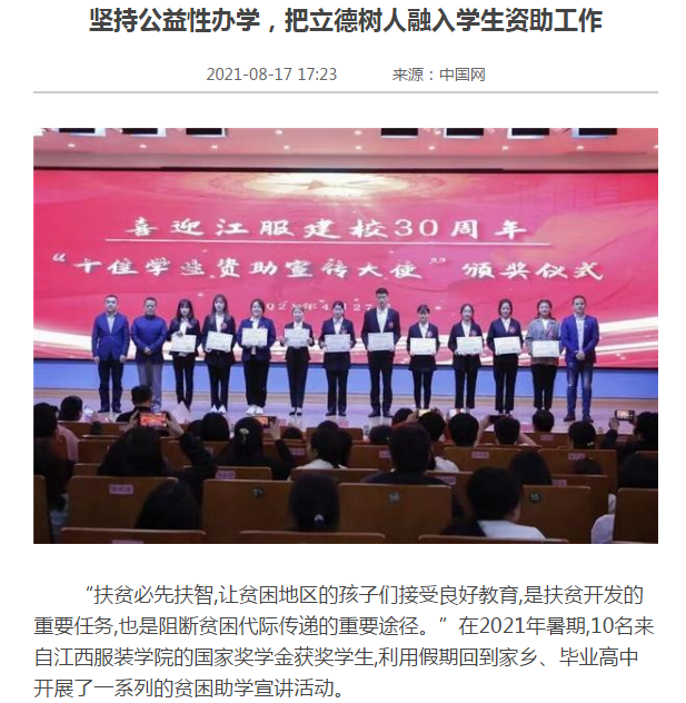 中国网:坚持公益性办学,把立德树人融入学生资助工作