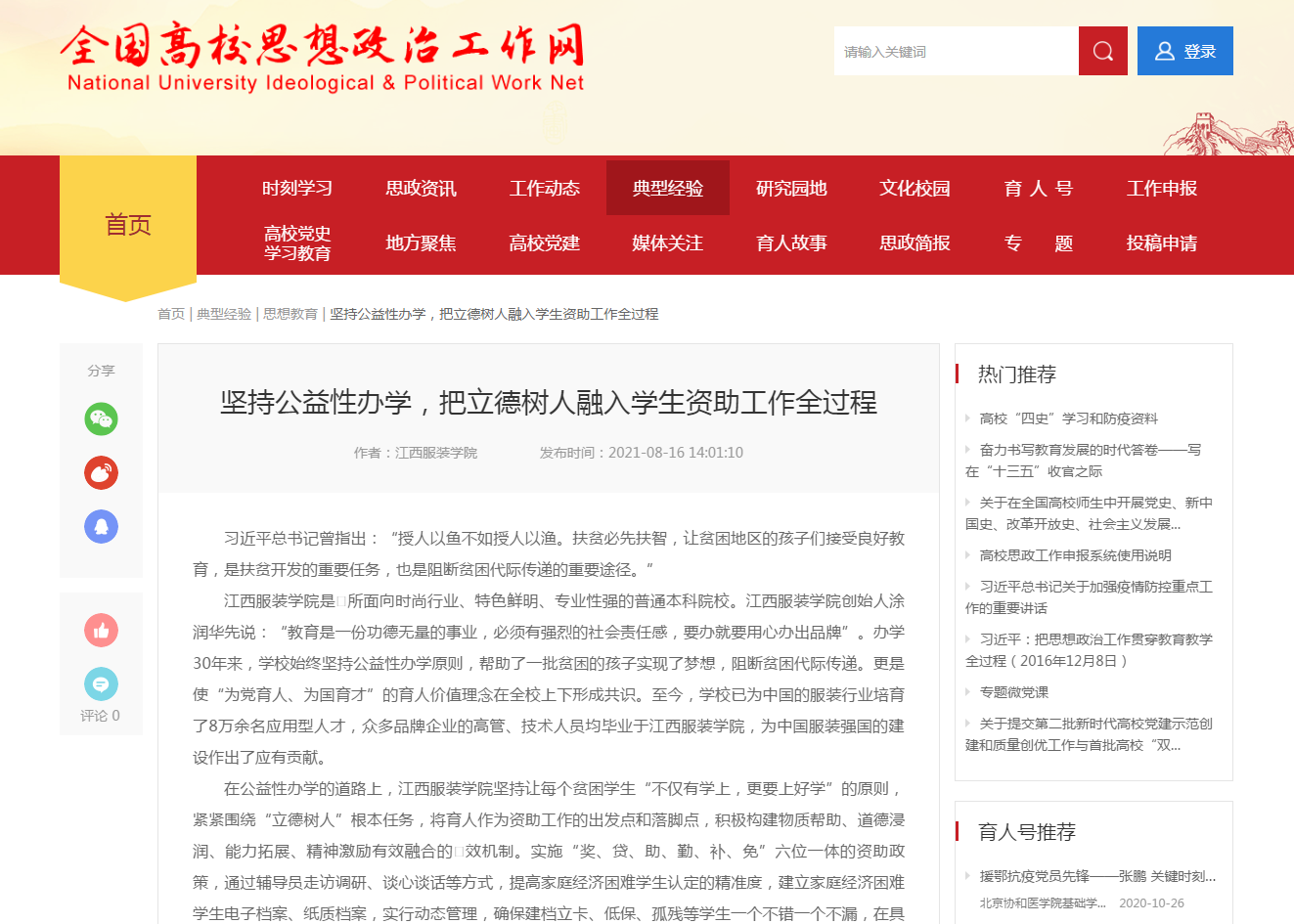 新闻链接:全国高校思想政治工作网:坚持公益性办学,把立德树人融入学生资助工作全过程