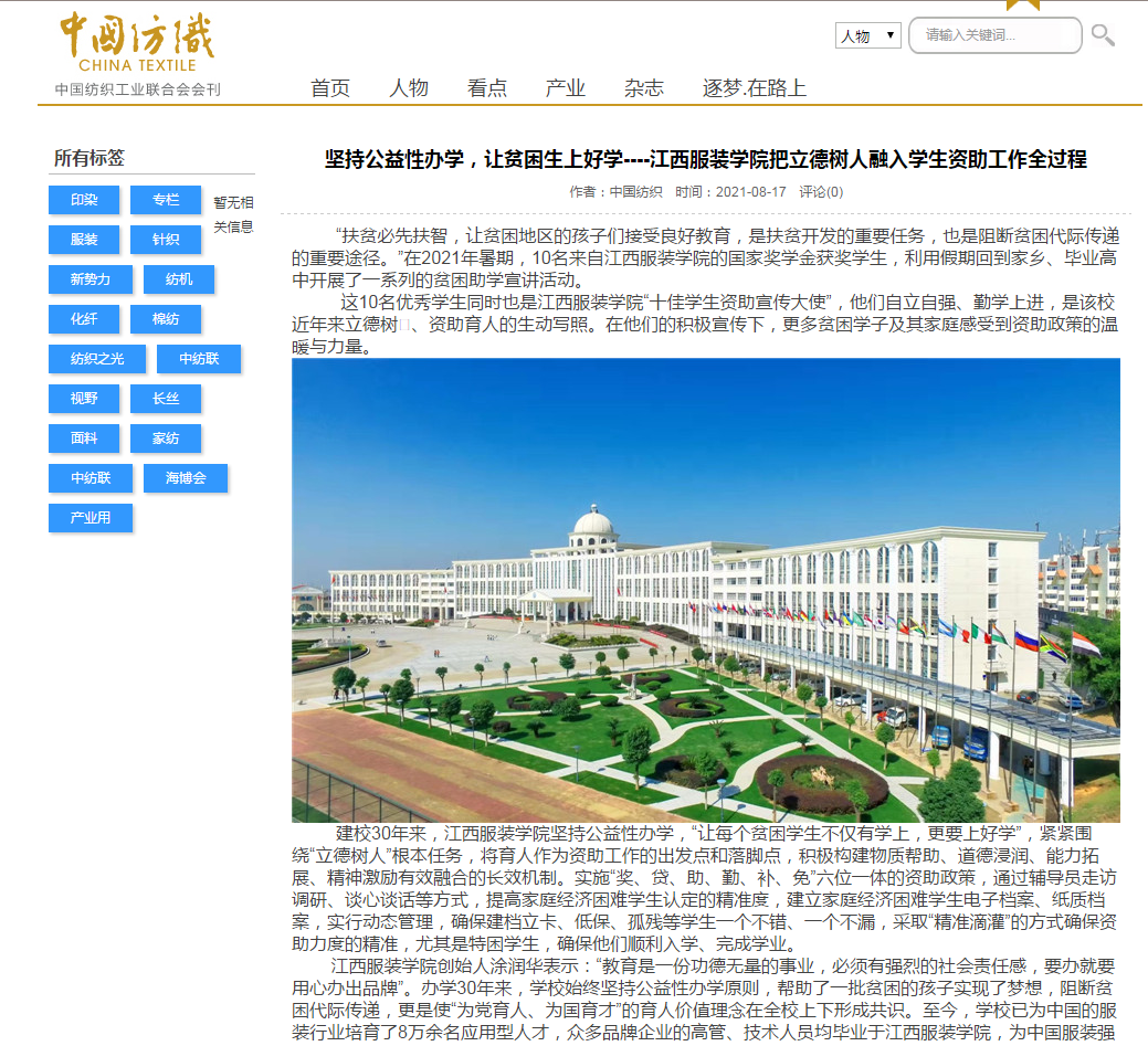 中国纺织:坚持公益性办学,让贫困生上好学----万象城平台把立德树人融入学生资助工作全过程