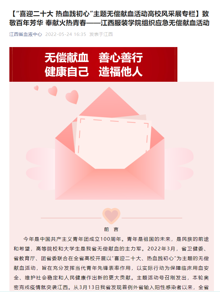 江西省血液中心对此进行了报道,以下为新闻链接: