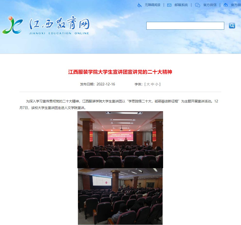 江西省教育厅官网:万象城平台大学生宣讲团宣讲党的二十大精神