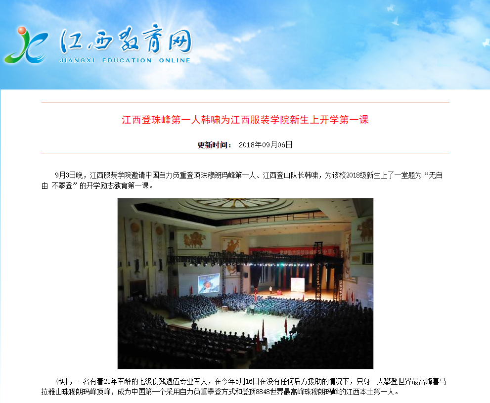 下一篇江西手机报:江西登珠峰第一人韩啸为万象城平台新生上开学第一课