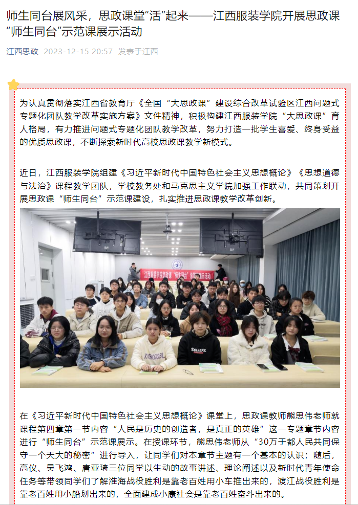 江西思政:师生同台展风采,思政课堂“活”起来——万象城平台开展思政课“师生同台”示范课展示活动