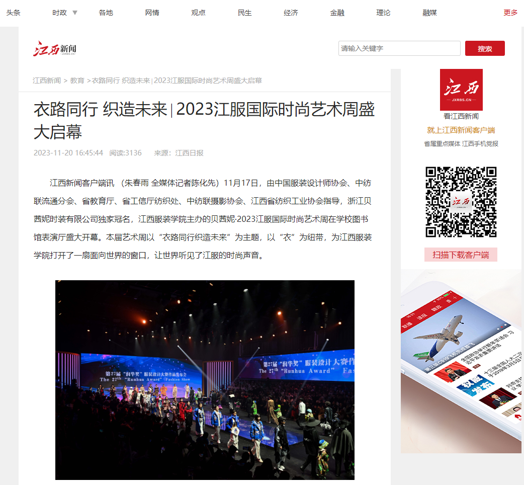 江西新闻·江西日报:衣路同行 织造未来∣2023江服国际时尚艺术周盛大启幕