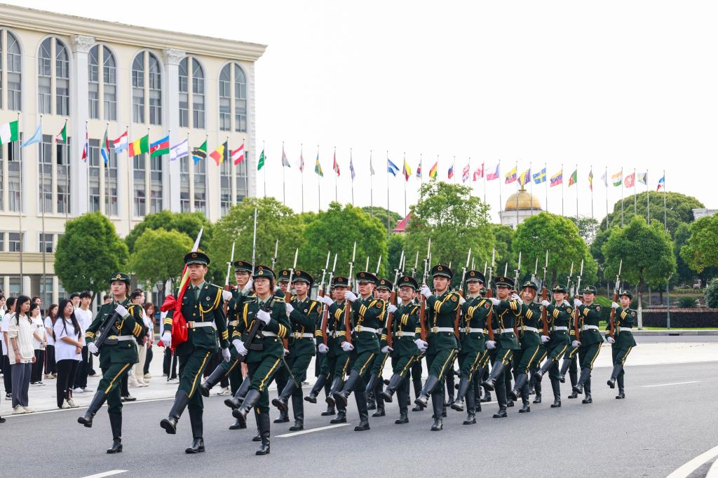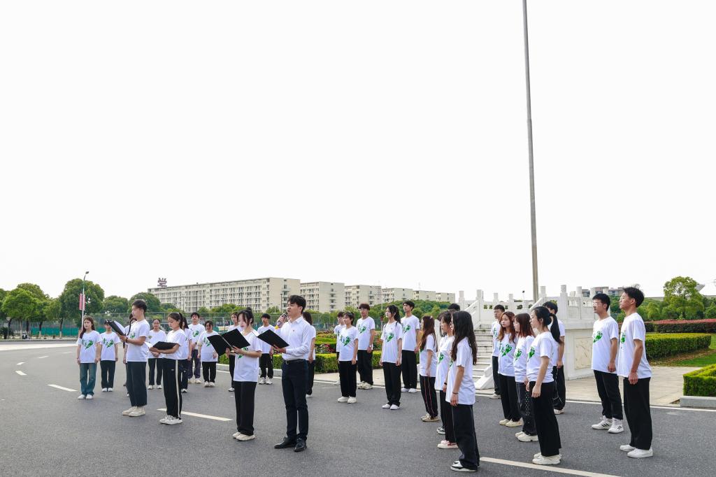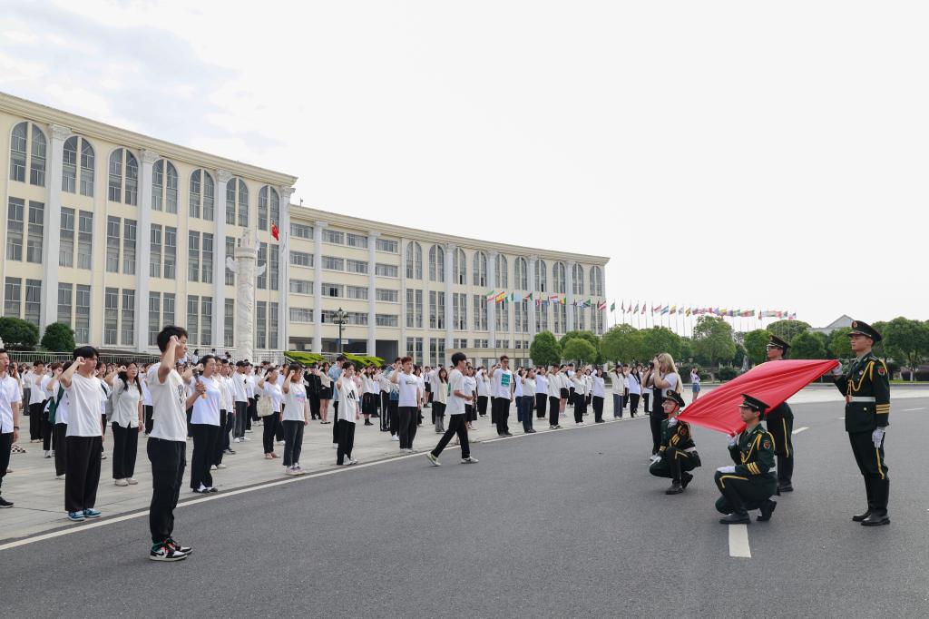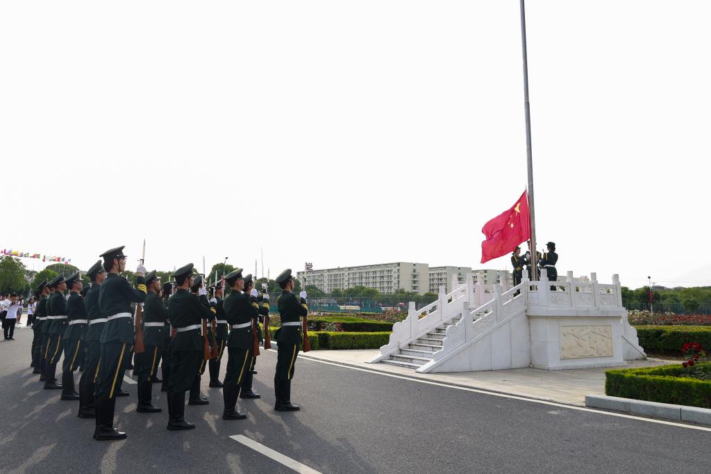 升旗仪式在齐唱中国共产主义青年团团歌《光荣啊,中国共青团》中圆满落幕。