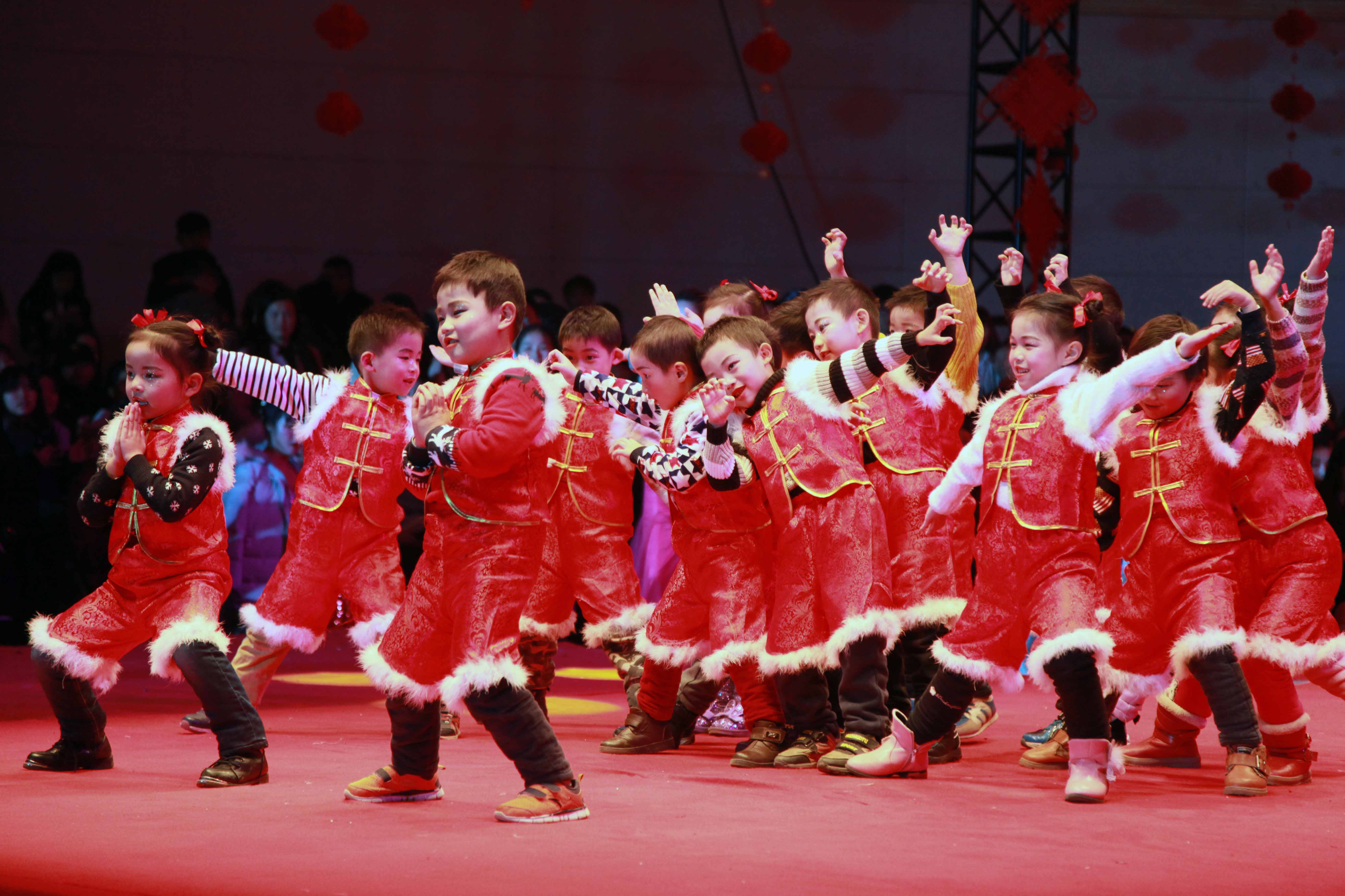 新年联欢会在歌舞《最美宫灯红》中拉开帷幕,身姿曼妙的舞者手持红艳喜庆的宫灯,奏响了新年最美的乐章;武术表演《快乐宝贝》中,江服时尚幼儿园的孩子们化身“功夫宝贝”,挥舞着憨态可掬的小拳头,天真活泼的精彩表演博得全场观众笑声和掌声;朗诵《少年中国说》字字铿锵有力,句句饱含深情,歌咏江服青年学子们对祖国的热爱和奋发图强的意志;“一路豪放,育人的路上我们高举理想,用爱与智慧为青春导航。”全体辅导员带来合唱《辅导员之歌》,老师们用嘹亮的歌声,演绎出全体学工人员无私奉献的精神和育人成才的伟大理想;民族歌舞串烧《最炫民族风》既展现了浓郁的民族风情,更体现出各民族同学团结友爱,共同建设江服美好大家庭的美好愿景;格斗拳《军魂》中,曾经投笔从戎经过军营生活的锤炼,又光荣退伍重新走进课堂的6名同学用标准的军姿,干净利落的动作,一个又一个的高难度动作震撼全场,将军队大学的好思想、好作风带回江服,感染了每一名师生;体育教研室老师们的舞蹈《PPAP》神曲一响全场爆发出热烈的欢呼声,动感夸张的舞蹈引起阵阵尖叫,同学们难得见到老师们充满活力与新潮的另一面;健美操《响扇》、器乐演奏《打虎上山》、歌舞《夜空中最亮的星》、《云水禅心》、《画心》等节目也都精彩纷呈,气氛或清新或火热,舞姿或动感或酷炫,将江服师生的才艺展现得淋漓尽致,现场掌声迭起。整场联欢会以“不忘初心,聚力筑梦”为主题,涵盖了独唱、舞蹈、朗诵、武术、小品、乐器合奏等20个节目,为观众献上了一场美妙绝伦的视听盛宴。