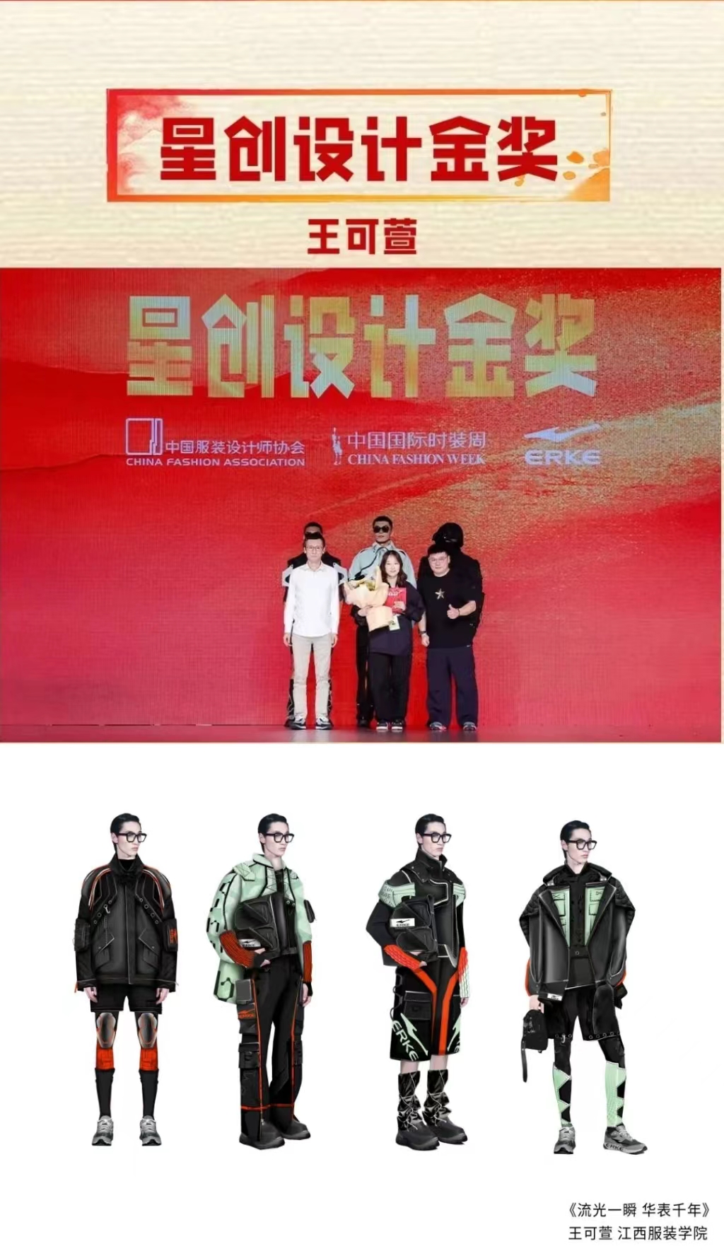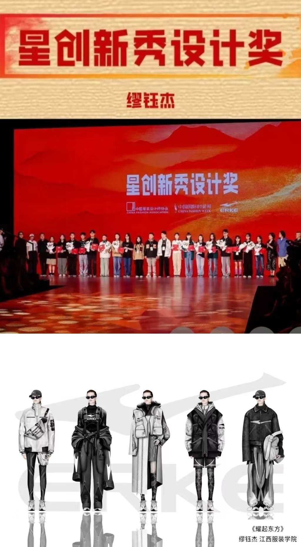 新闻中心讯 9月12日,第三届鸿星尔克青年共创设计大赛总决赛在中国国际时装周上完美收官。经过激烈角逐,最终,我校服装设计学院21级服设本科5班王可萱同学荣获金奖,21级服设本科4班缪钰杰同学荣获星创新秀设计奖。