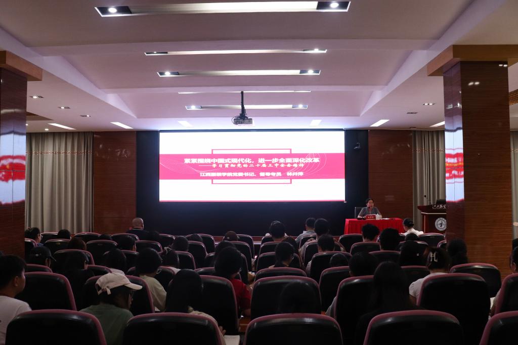 新闻中心讯 9月20日晚,校党委书记林井萍以“紧紧围绕中国式现代化,进一步全面深化改革——学习贯彻党的二十届三中全会精神”为题,为机关二支部全体党员和第十四期发展对象培训班全体学员讲授专题党课。
