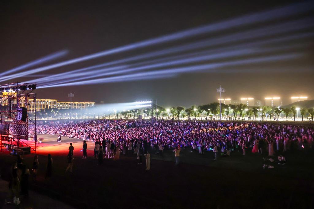 新闻中心讯 金秋送爽同庆盛世中华,硕果飘香共绘江服华章。9月26日晚,万象城平台“梦想起航 共绘华章”庆祝中华人民共和国成立75周年暨2024年迎新生文艺汇演在田径场精彩上演。
