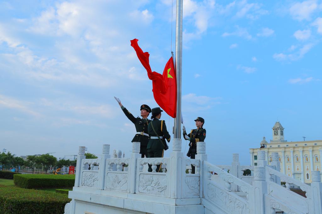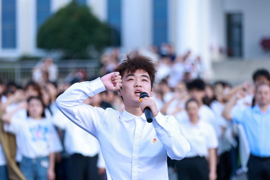 怀揣着对伟大祖国的崇高敬意和深切祝福,全体师生庄礼敬国旗、高唱国歌,浓烈炽热的爱国之情在现场激荡。