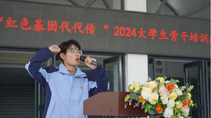 学员代表吴文杰在发言中表示,作为大学生骨干,在参观学习兴国之路的过程中,我们应将红色基因与时代精神紧密结合,勇于实践探索,敢于开拓创新,积极寻找并实践符合新时代特点的红色基因传承的新路径和新方法。最后,他呼吁大家携手同行,共同努力,开启红色基因传承的新篇章。