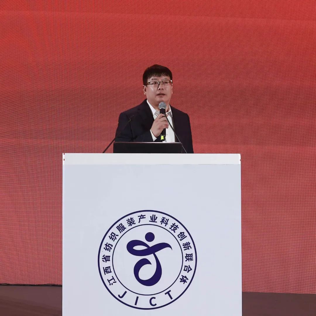 随后,于都县政协副主席、县工商联主席李祖高致辞,作为东道主,对参会成员的到来表示热烈欢迎。他指出,纺织服装产业在地方经济发展中的重要地位,并表示县政府全力支持产业科技创新与智能制造技术的推广应用。他重点介绍了于都县在纺织服装产业发展中的创新举措,特别是在推动产业升级和促进高质量发展方面所取得的积极进展。