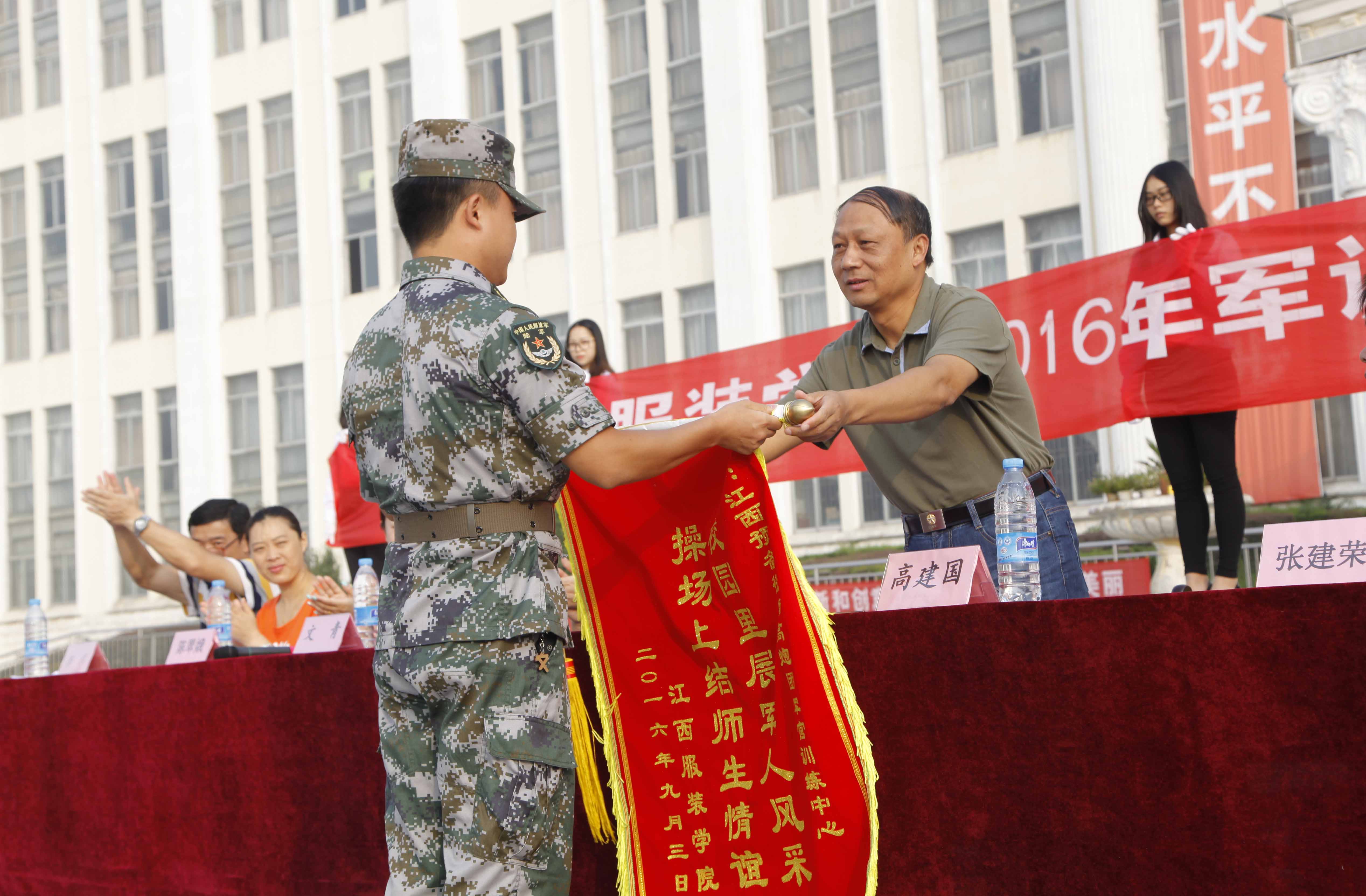 党委副书记高建国为承训官兵送锦旗