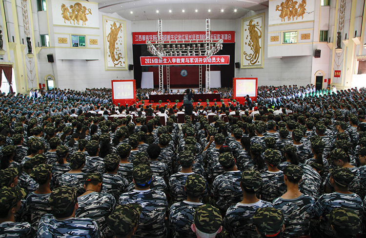 随后,校党委副书记高建国作了讲话。高书记首先代表学校欢迎新同学的到来,向多年来校帮助军训的参训教官及参与军训工作的同仁和学生志愿者表示衷心感谢。接着他说,正值学校建校25周年之际,学校围绕“创新创业,转型发展,本科评估”三大任务,努力实现建设有特色高水平应用技术型大学。建校以来学校先后培养出6、7万名毕业生,在各类设计大赛上斩金夺银,学校也获得了多项荣誉。当前,学校作为江西省转型发展试点单位,办学条件不断改善,校园环境更加优美,今年暑假学校又安排多个项目建设,投入大量资金,对多方面进行提升改造,同学们的学习生活环境得到了进一步改善。希望同学们像优秀校友和学长学姐们一样,为梦想不断拼搏。