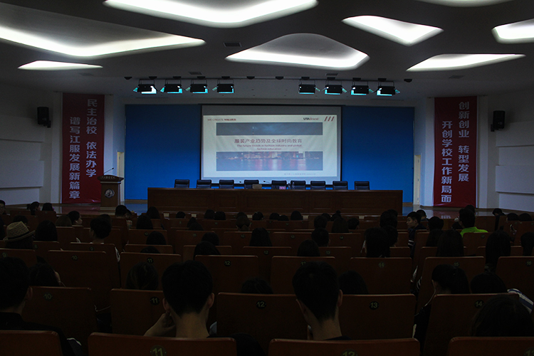 随后杨教授围绕产品性价比、国内外百货商场、房租、GDP等方面对中国经济模式作了进一步讲解,分析了从上世纪30年代的流行品牌到现在的流行品牌的兴衰原因。他认为,这些是由消费载体(消费人群)所决定的,也就是相对应的年龄层的消费心理和习惯。他表示,目前我国服装产业的产业链核心将逐渐向前端服装设计环节转移,特别是以90后为代表的消费载体,对服装款式设计的独特性、新颖性和时尚要求很高,这就需要服装设计师对流行趋势的把握,从事制版工艺的设计人员则要求经验丰富,对款式设计意图有较高的领悟能力。针对新时代的消费趋势,杨教授认为,在经济发展新常态的背景下,我国已进入消费需求持续增长、消费结构加快升级、消费拉动经济作用明显增强的重要阶段,物质消费上升到时尚健康的生活方式消费,而这也预示着传统消费的传承和创新,因此要顺应消费趋势谋发展、促发展,大力倡导坚持市场主导,崇尚绿色环保。他建议同学们要慎重的选择第一份工作,要选择具有未来趋势的企业就业,注重学习,更要注重综合能力的锻炼。杨大筠教授结合自身经历和经验,希望同学们要有毅力,有恒心,培养自己的职业兴趣,因为选择比努力更重要。