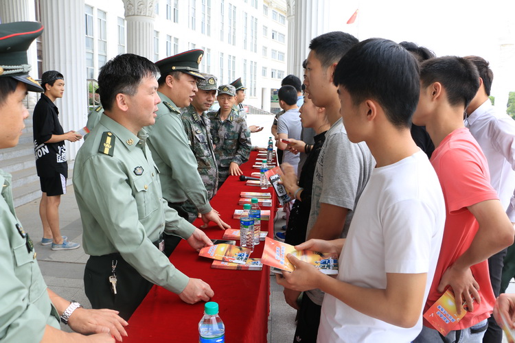 服装报讯(记者/陈楹   摄影/左正鹏) 5月17日下午,南昌县人民武装部政委胡洪武等人来到我校进行征兵宣传,解读征兵政策,受到学生们的欢迎。有200多名学生在现场进行了咨询。