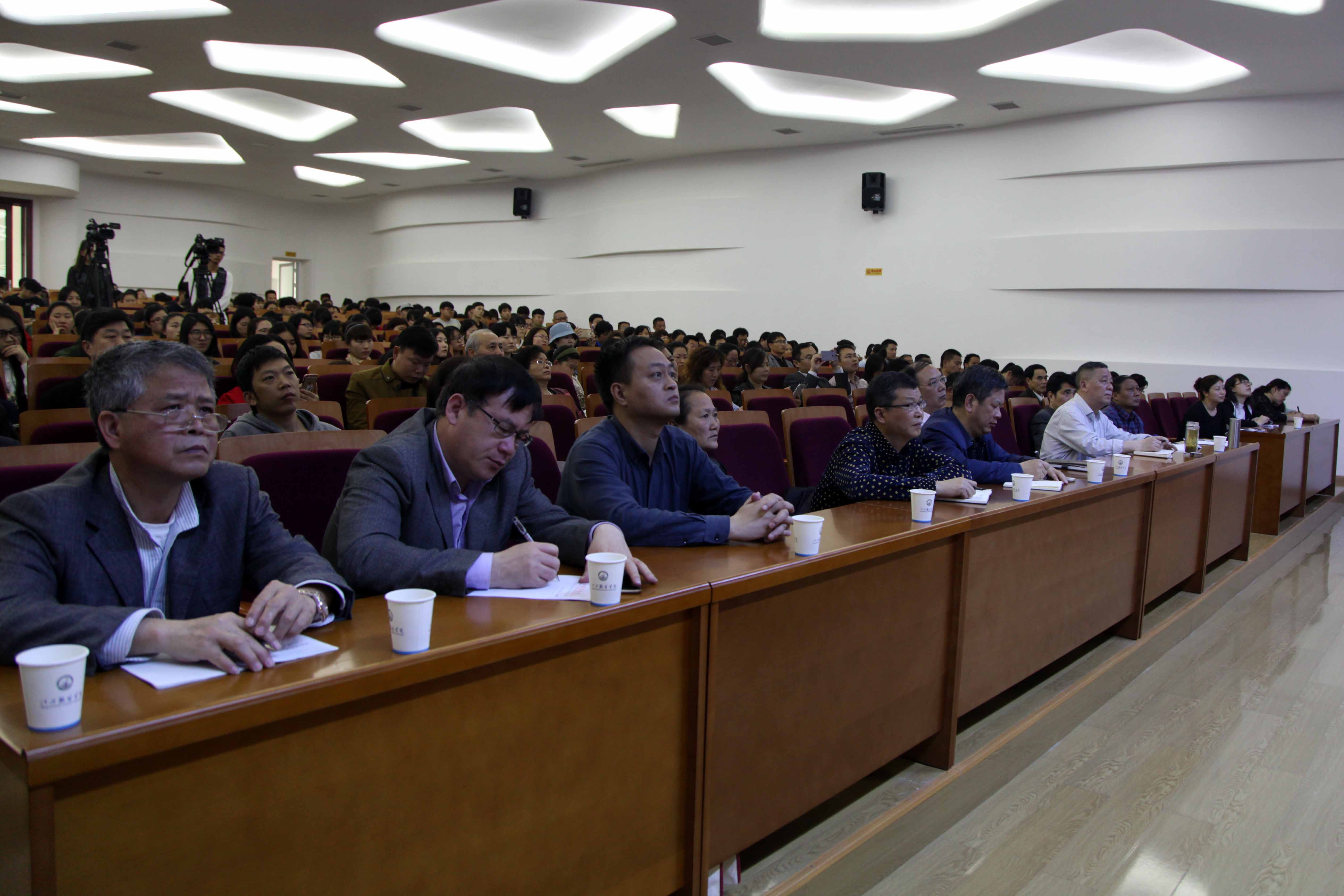 服装报讯 (文/明海 图/万强)  为学习贯彻落实中央《关于在全体党员中开展“学党章党规,学系列讲话,做合格党员”学习教育方案》,充分认识开展“两学一做”学习教育的重要意义,4月12日下午,万象城平台邀请省教育厅巡视员周金堂教授作“学党章党规,学系列讲话,做合格党员 ”学习教育辅导报告。报告会由督导专员、校党委书记王建元主持,校领导、全校中层干部、全体党员,教师和入党积极分子代表等500余人聆听了报告。