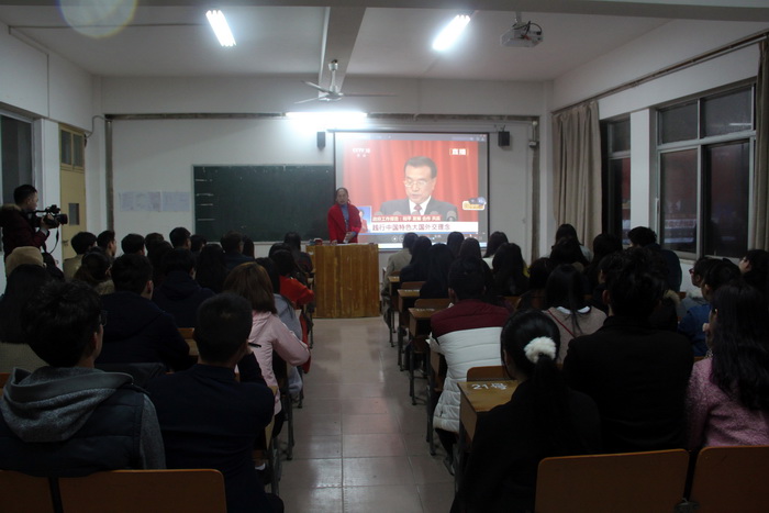 服装报讯(记者/李凡通 杜佳琪 吴卓雅 摄影/余婷 吴金燕) 3月3日、5日,第十二届全国政协第四次会议和第十二届全国人民代表大会第四次会议在北京隆重举行。连日来,我校师生心系国家最新发展动态,通过报纸、网络、电视、广播、微博等多种媒体收听、收看“两会”报道,并通过主题班会、小组讨论等形式热议“两会”热点问题。