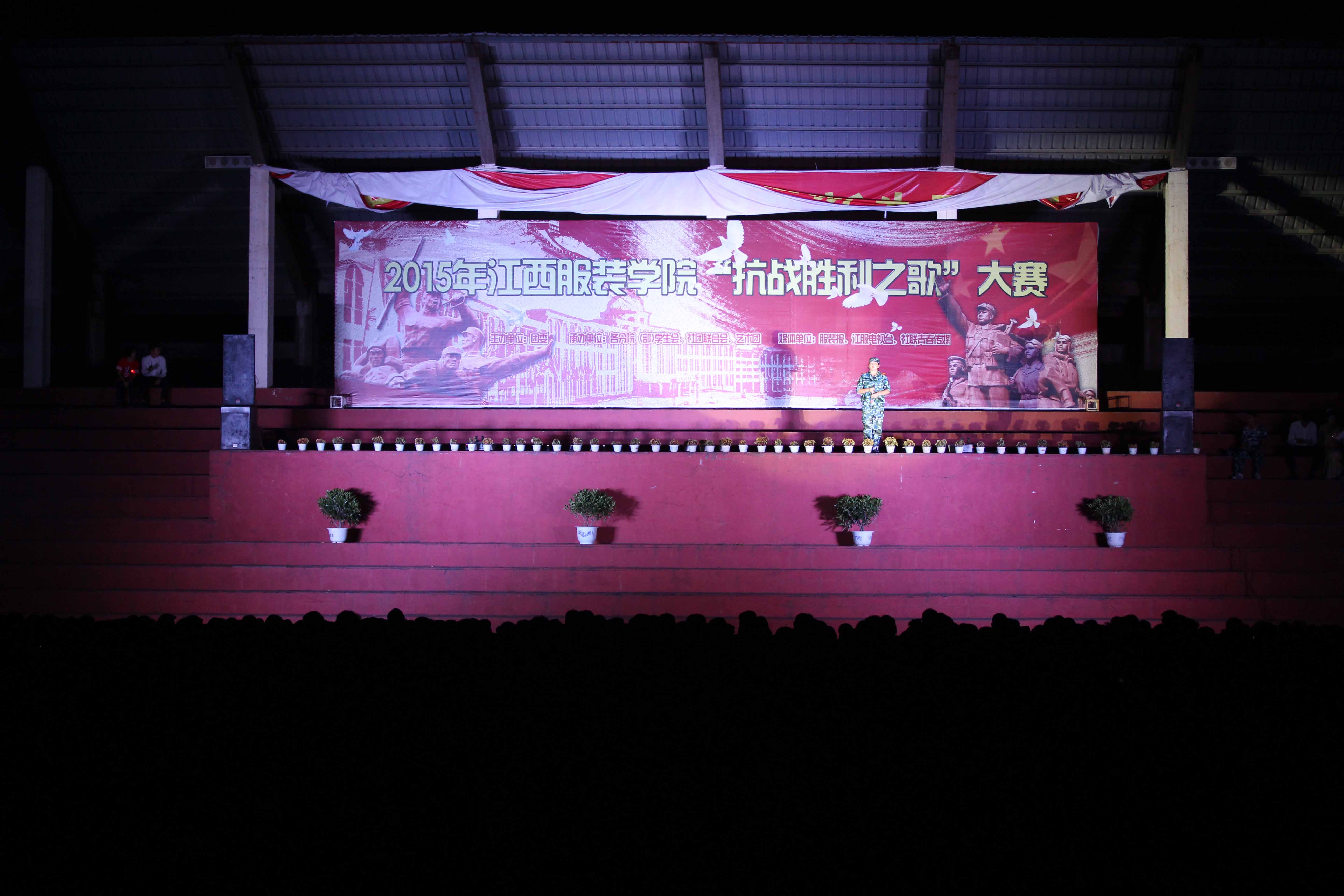 服装报讯(记者/赵冉冉 闫宝芸 摄影/左正鹏):忆往昔峥嵘岁月,抒今朝爱国情怀。恰逢抗日战争胜利70周年之际,我校于9月6号晚在校运动场举行“抗战胜利之歌”大赛,千余名师生到场观看。校党委副书记高建国、学工处处长张建荣、团委书记朱红及各分院领导出席了晚会。