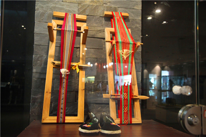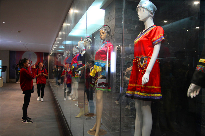 作为2017年江西省社科普及宣传周暨学术活动周第30个项目,本次畲族服饰科普宣传展展出了百余件畲族服装、头饰、刺绣、彩带、布鞋、围腰、布包和银饰品,以及以畲族元素创新设计的新时代凤凰装等。现场陈设了百余块畲族服饰文化知识科普展板和畲族服饰风情摄影图片,也吸引了众多师生深入探究和多方位追溯。特别是来自浙江景宁畲族自治县老艺人表演的畲族彩带编织和学唱畲歌畲语,这项非物质文化遗产技艺更是吸引了大量师生驻足观看,拍照合影,刷屏点赞不停。当晚博物馆放映了畲族微电影《山哈女友》和大型畲族服饰风情舞蹈诗《千年山哈》实况录像,让江服师生进一步了解了畲族人民的传师、耕山、盘歌、礼嫁等传统文化习俗。