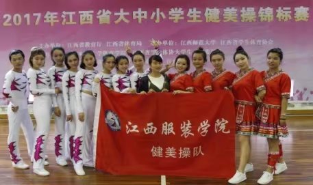 服装报讯   由江西省教育厅、江西省体育局主办的2017 年大学生健美操锦标赛于5 月27-28 日在江西师大举行。我校健美操队在此次大赛中荣获本科甲组中国风健身操第一名、全民健身操第一名和中国风健身操响扇第二名的优异成绩,王润龄同学被评为优秀运动员,陈纯老师被评为优秀教练员称号。同时,我校体育教师代表队荣获教工组排舞比赛第二名,徐红和黄琼两位教师被评为优秀教练员。