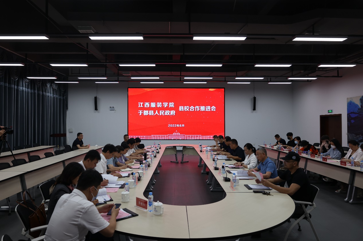 下午3时,县校合作推进会在图书馆三楼学术报告厅召开。于都县县委书记黄法,于都县县委常委、副县长杨海峰,于都县政府副县长孟佳聪及于都县委县政府相关职能部门负责同志出席推进会。我校理事长涂顺强,副理事长涂燕萍,副校长陈东生,党委副书记唐新强,副校长易城、李宝君出席会议,教务处、科技产业处、创新创业学院、服装设计学院、服装工程学院、时尚传媒学院、就业处、招生处等相关职能部门负责人参会。