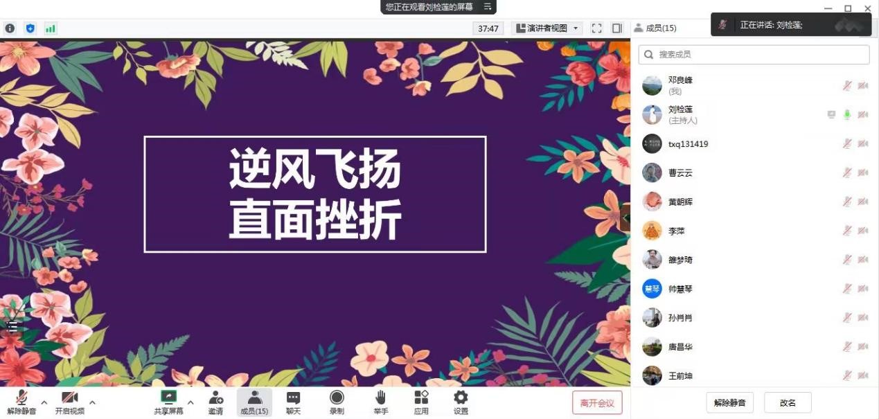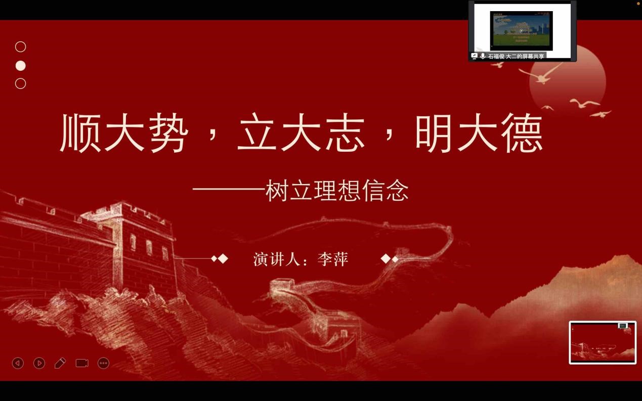 新闻中心讯 主题教育班会是大学生班级教育活动的主要形式之一,更是班风塑造、学风形成的重要抓手,是思政育人主阵地。为发挥主题班会思政教育主渠道作用,提升育人实效,我校学工处在寒假期间组织大一至大四四个年级组对2023年春季学期主题教育班会课程进行制作、打磨。2月7—8日,学工处组织开展主题班会线上演练试讲活动,校党委副书记唐新强出席活动,学工处处长邓良峰、时尚传媒学院党总支副书记黄朝辉及参与制作的辅导员参加了此次活动。